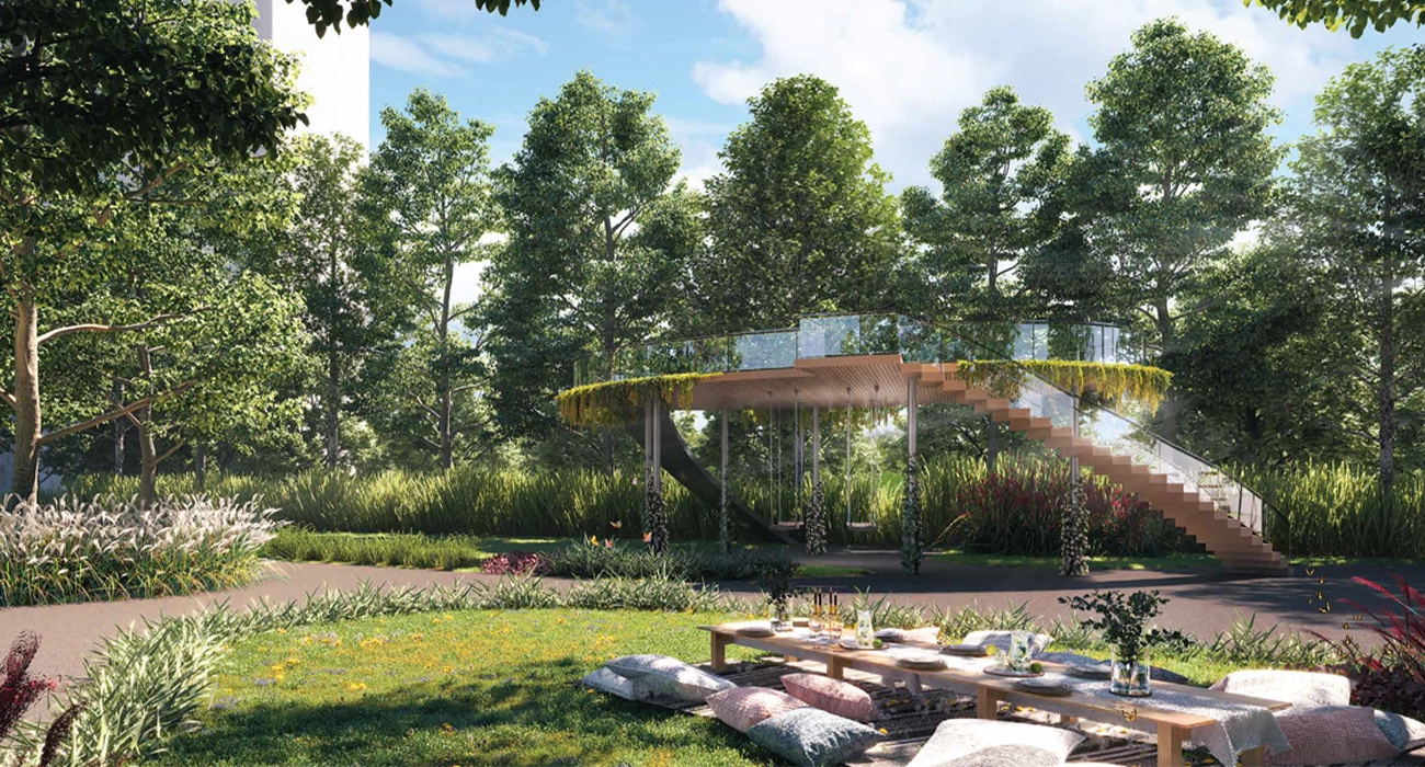 Serene 5 acre open spaces on a podium